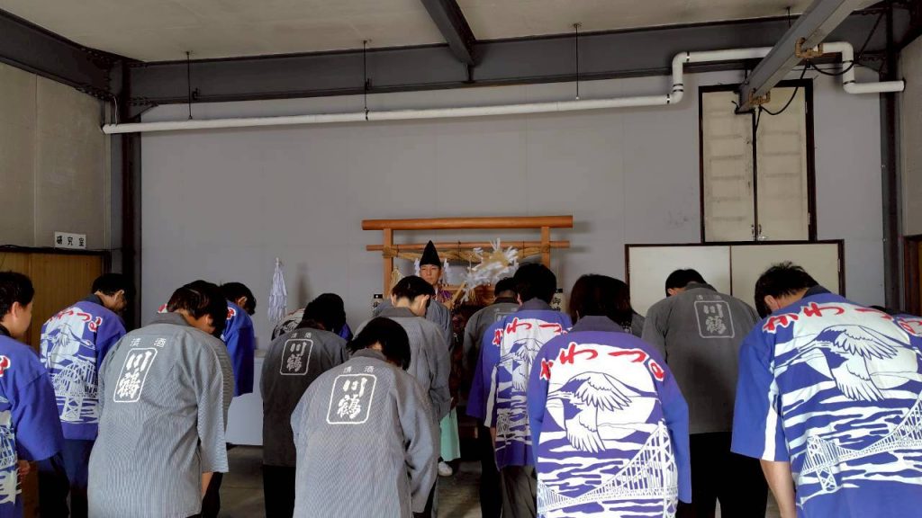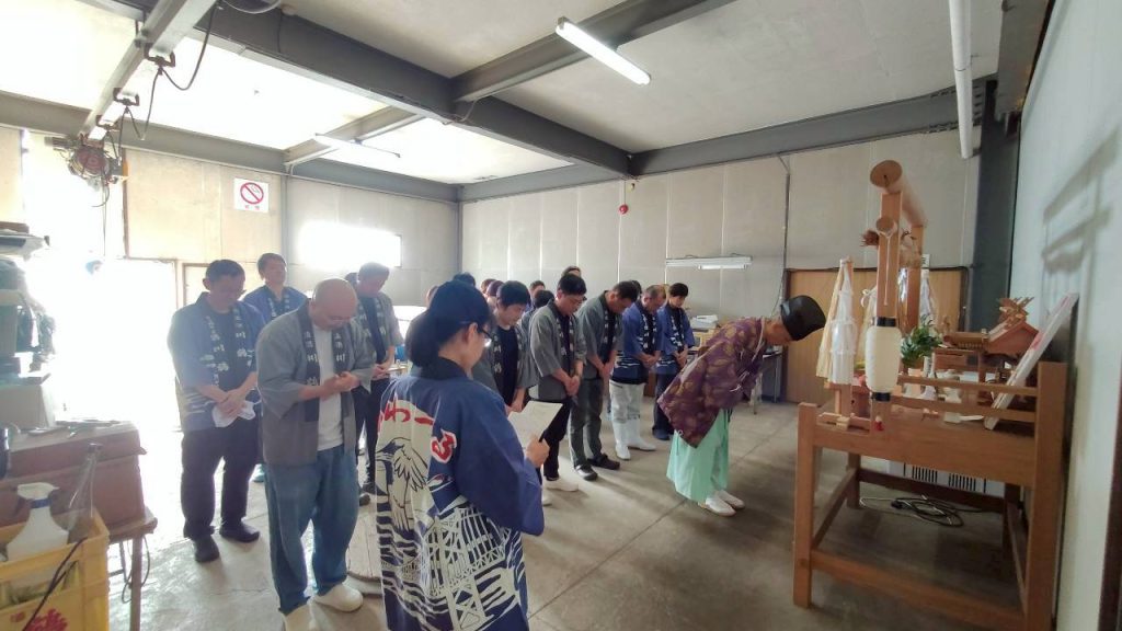 今期も既に酒造りがスタートしていますが、10月17日(金)に着手式(酒造神事)を執り行い、菅生神社宮司による無病息災醸造安全祈願を賜り、社員全員で心新たに和醸良酒を誓いました。