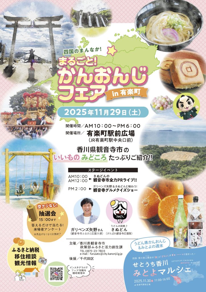2025/11/18 まるごと観音寺フェア 今年もやってきました。毎年恒例の「まるごと観音寺フェア」in有楽町駅前広場が開催されます!日時:11月29日(土)10:00~18:00場所:有楽町駅前広場(中央口前)地元観音寺市の魅力がたっぷりと詰まったイベントです。当蔵も出展します!観音寺出身の方、香川県ファン、日本酒好きの皆さま、どうぞお立ち寄りくださいませ。当蔵からも元気ハツラツ観音寺大好き社員がお待ち申し上げております。 PREVIOUS 一覧に戻る